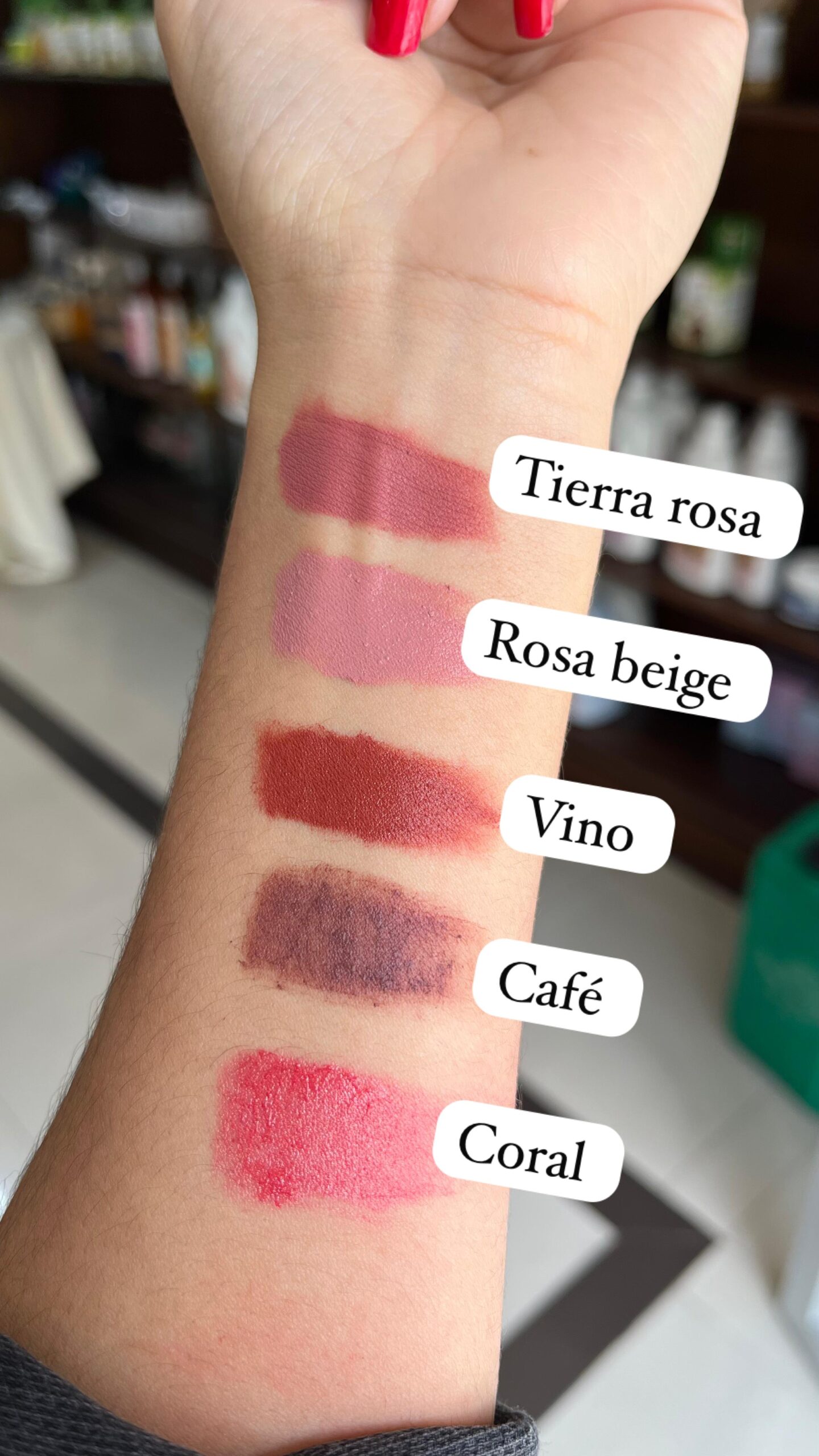 Ingredientes: aceite de coco, manteca de karité, cera de abeja, cera candelilla, micas, óxidos y vitamina E. Contenido neto: 10 gr colores: tierra rosa, rosa beige, vino, coral y café.